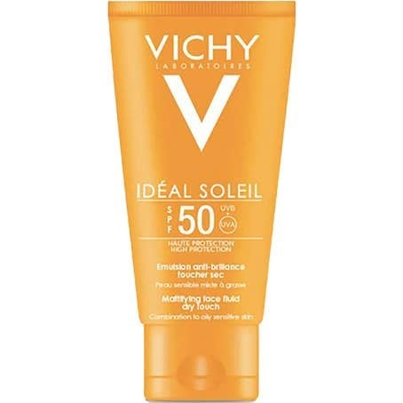 واقى شمس فيشيIdeal Soleil Mattifying Face Fluid SPF 50+ يوفر حماية عالية للبشرة من أضرار الأشعة فوق البنفسجية، يمنع فرط التصبغ وشيخوخة الجلد المبكرة، مع تركيبة خفيفة باللمسة الجافة للبشرة المختلطة والدهنية، ويترك البشرة نظيفة وناعمة.